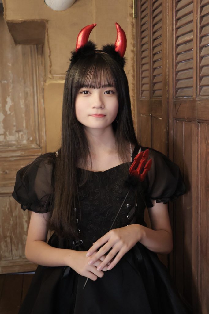 かほちゃんがツノをつけて登場した瞬間、可愛すぎて変な声が出そうになりました(笑)。 「イタズラしちゃうぞ」的な表情とか、もう心臓が持ちません……。 可愛い悪魔になら、魂を抜かれても本望です。